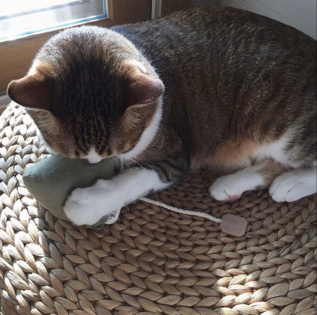 中綿に混ぜられたオーガニックキャットニップが、猫たちの野生本能を刺激します。